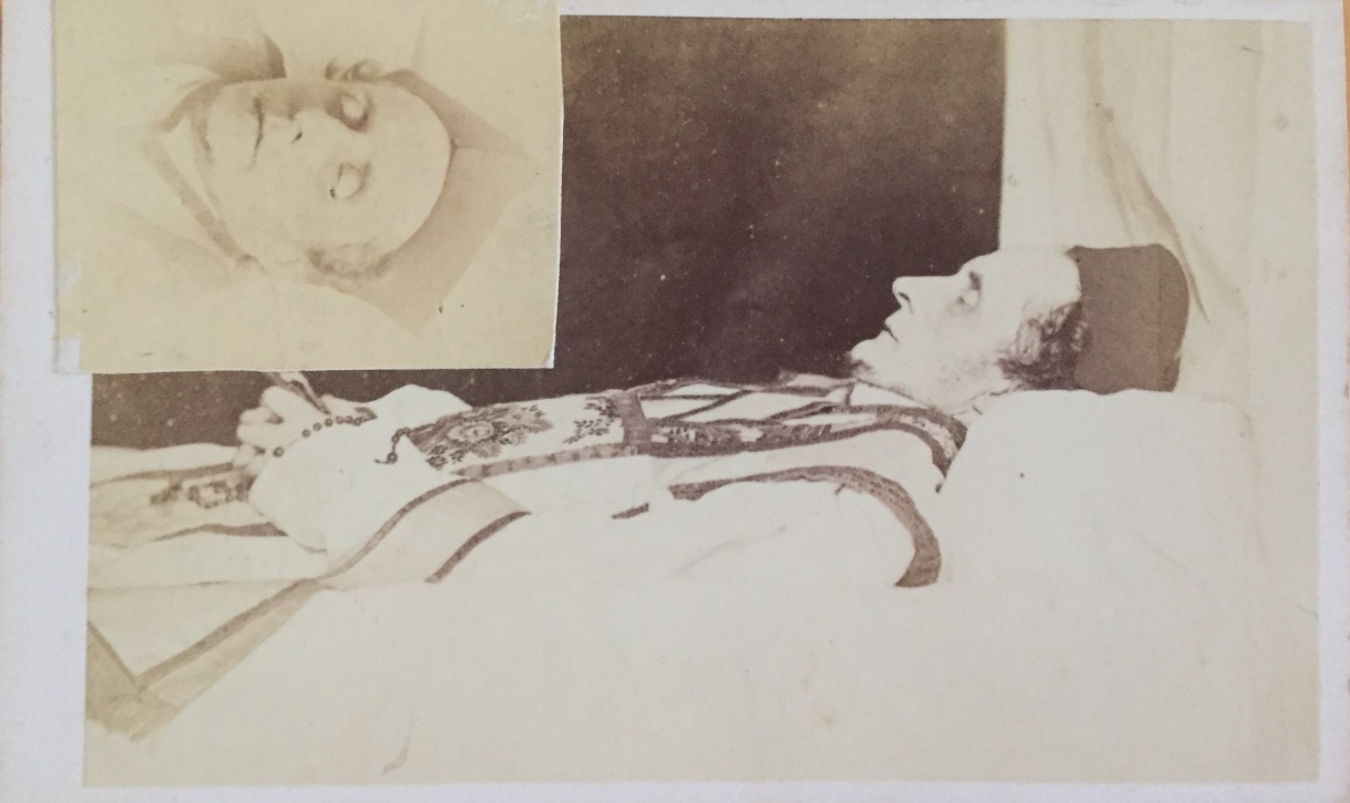 Photography emerged in Ireland simultaneously with its European counterparts in the mid-nineteenth century. Advancements in usage and appreciation of this new medium were facilitated by interest from Anglo-Irish landowners, the establishment of amateur photographic societies, and commercial photographic practices in Irish cities and towns.[22] Irish Jesuit engagement with photography dates from the 1850s onward, when they first employed photographic studios for portraits. At the foundation of the province in 1860—Ireland had been a vice-province since 1830—it was manned by 117 Jesuits, “of whom 60 were priests, 28 were scholastics and 29 brothers” who worked in Jesuit colleges, churches, and parish missions.[23] Coinciding with this expansion, periods of Jesuit formation (juniorate, philosophy, theology, and tertianship) were often spent in Europe, and in 1865, Australia became the first overseas mission of the Irish Jesuit province. Irish Jesuits used photography for remembrance purposes abroad and sent back portraits and Mass cards to overcome some of the tyranny of distance.[24] Irish Jesuits also memorialized the deceased by postmortem photography,[25] for example the Irish Jesuit Christopher Bellew (1818–67).
