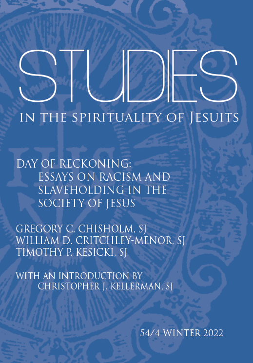 Chisholm, Gregory C., S.J., William D. Critchley-Menor, S.J., Timothy P. Kesicki, S.J., and Christopher J. Kellerman, S.J. “Days of Reckoning: Essays on Racism and Slaveholding in the Society of Jesus.” Studies in the Spirituality of Jesuits 54, no. 4 (2022). https://doi.org/10.6017/ssj.v54i4.16525.
