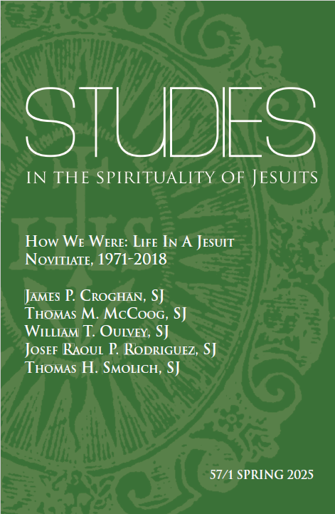 Croghan, James P., S.J., Thomas M. McCoog, S.J., William T. Oulvey, S.J., Josef Raoul P. Rodriguez, S.J., and Thomas H. Smolich, S.J. “How We Were: Life in a Jesuit Novitiate, 1971–2018.” Studies in the Spirituality of Jesuits 57, no. 1 (2025). https://doi.org/10.6017/ssj.v57i1.20003..